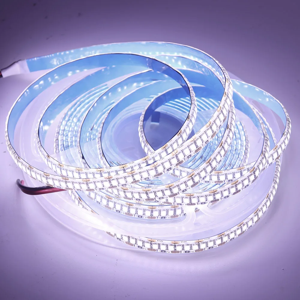 • SMD2835: 240 LEDs/m (10mm PCB, 8–10W/m, 12–14Lm/LED)